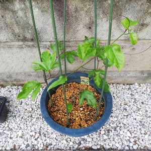 こんにちは〜😃 朝の冷えこみが厳しくなってます! 『仮暮らしの藤稔(ふじみのり)』 ブドウの苗生を購入し、丸1年になります。 どこに植えるか散々迷った挙げ句に決まらず、植木鉢+仮支柱で育てています。💦💦 方針が決まったので、近々畑に植え替えしたいと思います。 詳細はブログで📝 今日も楽しく参りましょう❢