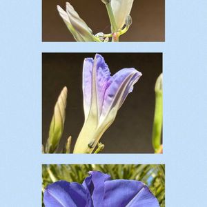 🏷️水曜日は水色 参加します🩵💙💜 ヘブンリーブルー今朝6輪開花 開花時間が遅くなりました😄 2枚目 シエルブリエ様 3,4,5新人さん