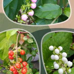 ジュズサンゴ ようやく桃玉が色づいてきて4色が可愛くツブツブしています🥰