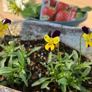 今朝はとても寒くてお花もカチコチに凍っていました🥶 それが太陽が登るとぽかぽか陽気☀ お庭にいると春じゃないかと勘違いしそうです😅 ①ときめきビオラ ひらひら蝶々 パピージョルジュグランデ 園芸店で購入したイリスプリエールの寄せ植え ②ときめきビオラ トロピカルクラッシュ ③つぶらなたぬきあずき ④コルティルーチェ ⑤いちご 東京おひさまベリー いちごは花芽が付いている株がいくつかありました。 この時期の花芽は実が育つことがないので早めに取ってしまうのですが、この暖かさならもしかしていちごが育ったのかな?って思いました。 もう取った後だったからどうしようもないけど💦💦 🏷復興を祈る 🏷頑張れ北陸♡