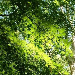 見上げれば、木漏れ日にモミジの若葉が輝いてました🌟