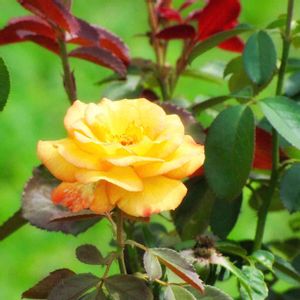 [名称]アンジェラ/Angela [系統・分類] モダンローズ(F) [作出者] コルデス [作出国] ドイツ [作出年] 1894年 [花色] 赤・桃 かわいい花がびっしりとつくバラです。ツル性で、スタンダード仕立てやポール仕立てにも向きます。四季咲き性です。 須磨離宮公園では噴水広場南に壁面状につるバラをあしらった「ガーラント」などに用いてありました。