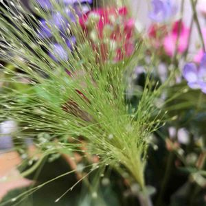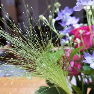 昨日、仏花を買ってトルコ桔梗と一緒に入ってたんですが、ほうきみたいな草です。