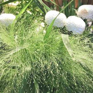 ピンポンマム シベリアにスモークグラスがまるで緑の水しぶきの様にかかる