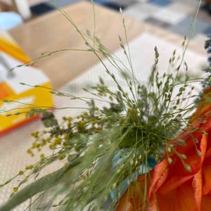 お花の定期便medeluさんからの4回目のお花です💛 オンシジューム、スモークグラス、アスチルベ、はじめてのお花がたくさん入ってました。