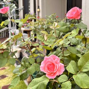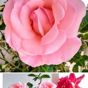 こんにちは〜😊♪ 今咲いているうちの木立ち性バラ 強剪定したら一回り大きい花が咲きました❣ クイーンエリザベス?でしょうか?? 花の直径15cmくらい大きめのピンク🩷バラ🌹💗背丈も2m以上 何年か前に台風で折れても強健でお花咲きました💪🌹💗 家を建替え前から長〜〜く数十年も頑張っています。 亡き父が丈夫な優等生🌹を分けて頂いたようです🙌 四季咲きらしく家の角に忘れないでと咲きます💗 なんだか父が何十年も見守ってくれている気がします💓 シンプルですが、これぞ🌹バラの王道✨✨✨ どなたか種類ご存知でしたら教えて頂けると嬉しいです🙏 ꕤᴗ ᴗ)⁾⁾♡