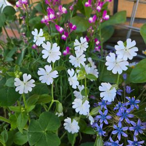 サポナリア・バッカリア 別名: ドウカンソウ(道灌草) 知人からもらった種を昨年蒔いたのですが咲かず、今年初めて咲きました。 カスミソウと聞いていたのですが、どうも違うようなので... 花もカスミソウより大きく、株姿も。 「サボナリア・バッカリア」と分かりました。 過去にもカスミソウに似た花と投稿したのを思い出しました。(2021.6.2 投稿) 可愛いピンク色の花💕「バッカリア・ローズ」 種から育てて開花を見るのは嬉しいものですね😆 ナデシコ科 バッカリア属 原産地: スペイン 開花期: 4〜5月 花言葉:「清らかな二人」「友の思い出」 ※同属に、宿根草の'サボンソウ'があります。