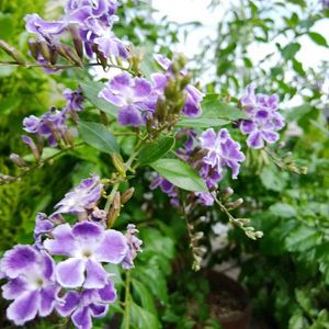 こんにちは~ 庭仕事のやりやすいお天気です 鉢植えデュランタ大きな株に育ちました!夏の剪定成功沢山咲き始めました! キャプテンさんの Gotoflowerに参加します! 花言葉 貴方を見守る 歓迎