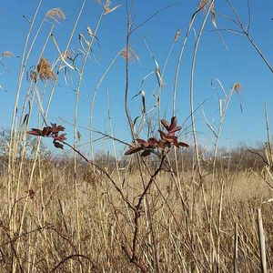 色づいたノイバラと枯れたアシの湿原 茶色の湿原と青空が似合います。 昨年1年間観察しながらお花を見てきた湿原です。 秋のお花、果実を緑のまとめにしましたので、時間がある時見て下さい。