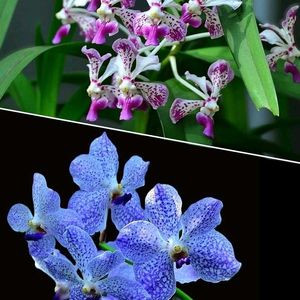 まだ未開花株なに子株が!! 親株は全然咲く気配なし この品種は咲きづらい種類で、高い気温を好む高温性のバンダです。 うちではよく根を伸ばし一番元気なバンダです。 真夏以外は全然高温ではないのに、うちの温室は高温性のバンダの方が元気 なぜ!?🤔