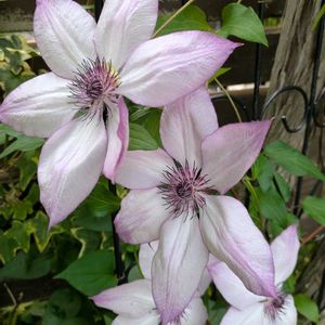 バラの開花とともに クレマチスもボチボチと始まりました(*´ω`*) 咲き進んで花姿の変化も楽しいよね💓