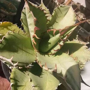 アガベ マルモラータ パピリオ プラタノイデス 調子を崩したが何とか復活した。よかった😁 形もさることながら、育て方も他のアガベとちょっと違うと言うのがわかってきた😁