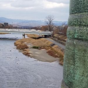二条大橋の下で ちょっと涼んでた 右の橋桁の所に ヘビさん♪ 楽し~🙆 青大将かな 早起きはしてないけど 徳した~🎶 三文の徳は 奈良の鹿さんね