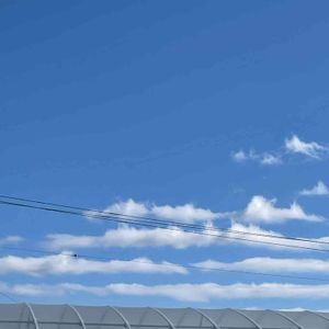 お散歩中♪ 果樹園の横の道路から。綿打ち中のお布団(した事は、ないけど)みたいなしっかり厚みのある雲でした。登ったら、歩けるんじゃないかって妄想中🥰