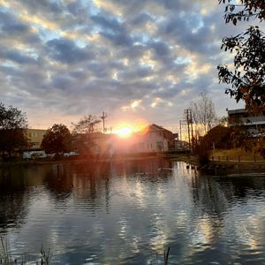 散歩道 水面に映る夕焼け空 空の雲は一日中こんな雲でした 今日は曇り雨でした 昨日のpicです (2021.12.5 16:01)
