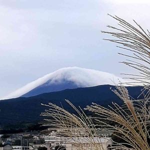 ススキの穂が開いてきました 台風の影響か布を被せられたような富士山でした (2021.10.1 17:08)