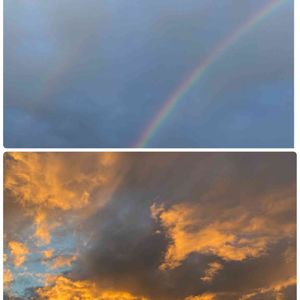 今日の夕方です。ダブルの虹が出たかと思ったら反対側の空は黄金の夕焼けでした。