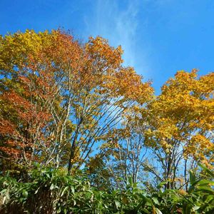赤・黃・緑・青 見上げる空に足も止まる 飛騨 標高1500m