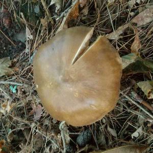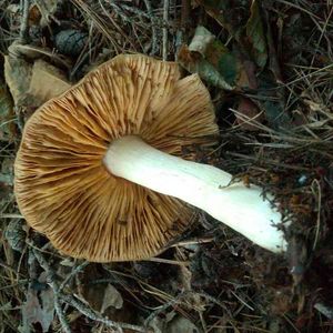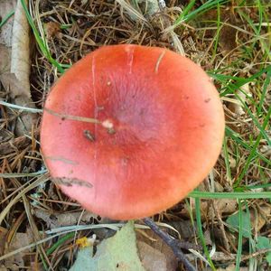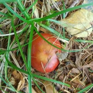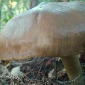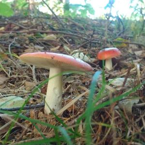このキノコは何?の続編です 少し前に投稿したベニタケ科?のキノコ、わからない流れの中で「最後はドクベニタケかなぁ」でお茶を濁してしまった私。 この写真はさらに標高を上げた地点で撮影しました。周りは広葉樹混じりの、針葉樹林帯。カラマツの葉が見えます カサのてっぺんの色があせています。これは、ひょっとして チシオハツ?ご意見ください。 1枚目です 中信 標高1600m
