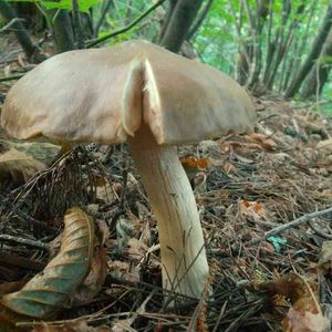 先にアップした幼菌に近いエリアで目にしたキノコです。これは、ひょっとしてその幼菌の成菌なのでしょうか。それとも、まったく無関係なキノコでしょうか?どう思われますか? 1枚目です 中信 標高1500m