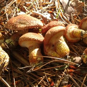 この人たちどなたでしょう カラマツベニハナイグチの幼菌? いや、そんな単純じゃなさそう😅 1枚目 長野県 標高1600m
