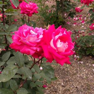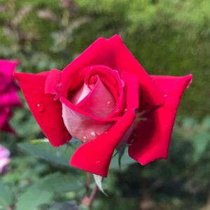 🌹綺麗な薔薇シリーズ🌹第20弾 花びらの表弁がローズレッドで裏弁が白の珍しい薔薇です。 ラブという名前です。 花付きがよく房のように咲きます。 1980年アメリカで作出。 中大輪・微香・四季咲き・房咲き ※下の「@バラ」のタグから綺麗な薔薇シリーズのバックナンバーをご覧頂けます。