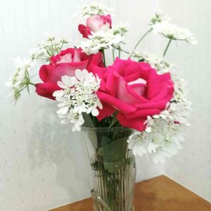こんにちは。◕‿◕。 雨が降る前に切って花瓶に入れてみたけど、なかなか皆様のようなセンスのいいアレンジにはなりませんね😥 あっ🫢 違和感の原因はグリーンが全く無いことだ❗ 投稿して気づきました😅