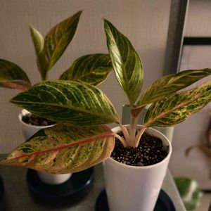 アグラオネマさん、前回の葉っぱは綺麗なピンクだったのに、今回は黄緑多めー✨先のほうだけ綺麗なピンク💕 置き場所も変えてないのに色違うなんて面白い!