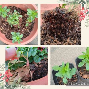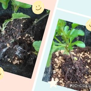 早朝から土を混ぜて、挿し木を1本ずつにしてみました。 古い土を少なめでセットしていた為、ポリポットから根が2本出ていたかと思うと昨日は5本見えていた。 早いかなと思いながら引っこ抜き、ビオラの挿し木の根っこはこのような状態でした☺️ 10月17日挿し木