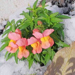 久しぶりの投稿です。 せっかく可愛く咲いているのに☃️❄️ とうとうやって来ました冬将軍💦 キンギョソウが好きで、白、黄色、赤、ピンクはいつも元気に咲いてくれているけど、アプリコット色💕 初めてだったからまだまだ楽しんでいたかったんだけどな💧💧💧 種が溢れるまで待っていてほしかったな😣 埋もれてしまう前に記念に👀📷️✨ まだまだ暖かい地方の方、羨ましいです‼️