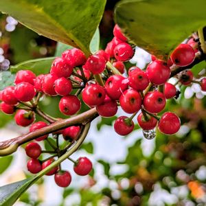 こんばんは〜🙏🥰😍🤩😉 もうすっかり真っ暗ですネ~😱😫😵😰 霜月(28日)火曜日(☁🌂) 今日は〜何て日だ〜‼‼ 強風が~急に〜いきなりガシャガシャガシャ〜ン😱 突風の為何かが飛ばされた〜割れた音〜もう~穏やかな日が~来ないかな~⁇ さて~今日は〜火曜日〜❤️ 赤い❤️実のpicを… ①…カザンデマリ(ピラカン サ)(トキワサンザシ) 常緑低木 バラ科トキ ワサンザシ属 ②…センリョウ(千両) 常緑小低木 別名(ク ササンゴ)(草珊瑚) センリョウ科センリョ ウ属 ③…クロガネモチ 常緑中 高木 別名(フクラシ バ)(フクラモチ) モチノキ科モチノキ属 ④…セイヨウヒイラギ 常緑小高木 別名(セ イヨウヒイラギモチ)( ヒイラギモチ) クリスマスホ〜リ〜 これも一緒で~ モチノキ科モチノキ属 ⑤…ナンテン(南天) 常緑低木 メギ科ナン テン属 縁起木 娘からのLINEにて… 娘の家🏠の庭の南天〜 ①…はご近所さんのお写ん 歩にて~🤳📱パシャ ②…は日曜日に✂に行っ たご近所さんの散策に て…🤳📱パシャリ〜 センリョウの❤️い実 ④…✂屋さん家🏠に咲いて た~❤️&💚ホンマに〜 🎄カラ〜だネ~✌️👍 ③…昨日お出かけした~静 の里にて~クロガネモ チ 今日は〜荒れた1日で~大変でした~😵😰😱😫 又出遅れましたが~宜しく~お願い致します~🙏🥰