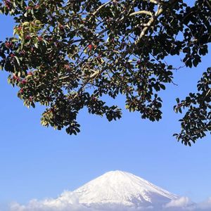今日の雪化粧の富士山と黒鉄黐、満天星躑躅 (2025.11.28 9:09〜小山町千保、足柄峠より)