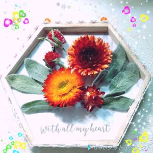 こんにちは☀️ 姫ウツギを シリカゲルにつけたら とっても綺麗なドライに なりました😊 フォトフレームに 飾りました 自己満足です(*´ω`*)