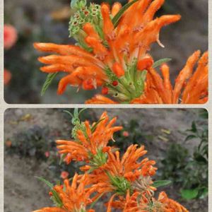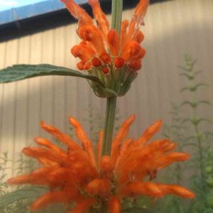 「カエンキセワタ」 ご近所の畑で元気に咲いていました。 目が覚めるような鮮やかな色合いです。 シソ科 カエンキセワタ属 別名はレオノティス 原産地は南アフリカ 和名をカエンキセワタ(火焰被綿、火炎着せ綿)と云うそうです。 My植物図鑑さんから教えていただきました。 撮影日 2019.12.15