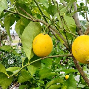 ユズ 隣の林や道端のご近所さんの小さな土地にある古いユズの木🟡 といっても実生では18年もかかるというので古いのは当たり前か(*´`*) 葉柄の幅広い翼があって、単身複葉と呼ばれるそうな💚つまり1枚の葉にも見えるけれど、途中に関節があって、大きな葉と小さな葉に分かれる進化の途中の姿らしい(3枚目) 枝のトゲは太い(#)Д`;;)イタイ!!! 枝先に蝉の殻一つ🟫(4枚目) 5枚目は香酸柑橘類のお仲間、我が家で収穫したレモン🍋露地植えでも寒さにめげず\(^o^)/ ★お友達、イギリス、シリア、国連機関、医師‥のワードでコメントやフォローして来る方にはご注意を‼️