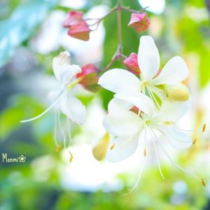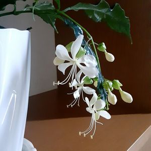 先日購入したクラリンドウウォリッキーの花が咲きました。白い蝶々みたいです。英語名はブライダルベール。おしべめしべがベールに見えますね。