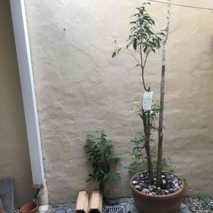中庭においてあるグリーンなんとかと言う植木。植木鉢に外側から同じ枝が伸びてきました!切るのもかわいそうだし、大きくなったらどうしたらいいのでしょう?(笑)ちなみに借家です。