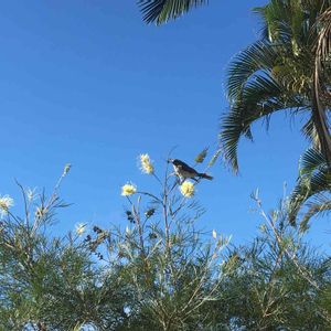 真冬のオーストラリア🇦🇺 今朝は庭先で花と鳥。 蜜を吸いに来ます。 大自然ブリスベン(笑)