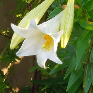 鉄炮百合 庭先に植えた記憶のない鉄炮百合が咲き出しました♫ ラッキー💞