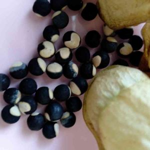 フウセンカズラの種✿✿ 茶色くなった風船から種を採りました。 ハート柄♥️可愛いです。 中には3つの種が入っているんですね。