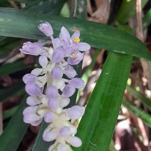 ヤブラン🥀 気がつけば沢山咲いています。が、目立たない。 葉っぱに埋もれ、、。 スーッと一直線に伸びた花姿に見応え有るなぁーと感じたGS仲間さんのご投稿の様にはいかない!こちらはクネクネ曲がり、葉っぱに潜る感じの花姿。かき分けて撮りました。 好きなムラサキ色ですが(/。\)💜 今日が良い日になりますように💐(^-^)/