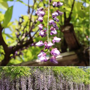 おはようございます😊 八重黒龍(牡丹藤) 一週間前に、児童公園で見た藤棚のお花が満開です💜 先週は黄砂でしたが、青空に2種の藤が綺麗です❣️😍 今日も気温が上がりそうですね❣️ お気をつけて、元気に素敵な木曜日をお過ごしくださいね💕🎶🤗 🏷木曜日は木に咲く花 🏷春色の青い花2023 🏷青空とコラボシリーズ 🏷樹木見上げ隊 🏷青いマメ科マニア