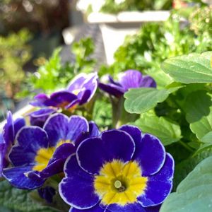 今日のお花⭐︎プリムラジュリアン タンバリンmix⭐︎ 濃い紫の花弁と白の縁どりがオシャレです 縁どりがある花ってなんか 好きです🎶