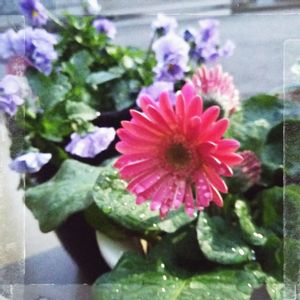 ガーベラ咲きました😋雨上がりまだ下向きだけど、久々のご対面💕 オレンジと思ったらピンク😨記憶違い💨 緑ばかりのガーデン🍀鮮やかな色に心躍ります🎶