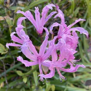 お買い物帰りの 道路の脇の花壇 ネリネ ダイヤモンドリリー 沢山咲いていました アップで 撮りました