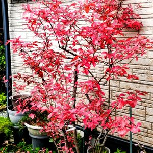 寒くなるのが遅くなったせいか今頃真っ赤かに紅葉しましたブルーベリーの植木です。