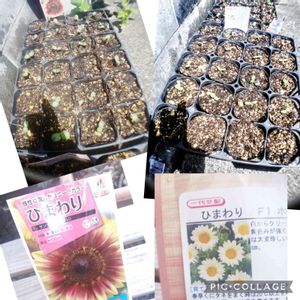 ヒマワリの種から沢山の芽が出ました。 赤色と白い花! 順調に育てば こんなには植えれないので近所におすそわけです。花咲いたら又picしますね🤗