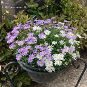 2、3日の雨で水撒きは免れました⸌ ⠉̮⃝︎︎⸍ 今日は曇り空☁️ お花のお世話が出来ました⚘𖥧𖡼⚘.𖤣𖥧⚘ ①ブルーデージー ②星空マム 再び咲いてくれました( •◡-ॢ)-💜*˚