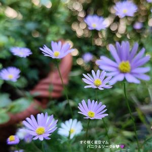 曇天模様の朝 いつも、見ていただき イイネも有り難うございます…🙏🙇♀☺️ 体調崩してて、 コメント欄閉じております。 ごめんなさい🙇♀🙏 元気ハツラツに咲く 昨年からの寄せ植えの 持ち越しの すぐ楽星空マムバニラ&ソーダの ソーダ色の方です。 バニラは・・・・・💦 (❁1.5㍉程) ➀picは二重露光加工してます… ③玉ボケpic =昨日のpic= いよいよ、大好きなバンビオの季節 ワクワクウキウキ お花に元気もらって 今日も楽しく愉しく元気に笑顔で過ごしましょ ほいたらね。(^^)/~~~