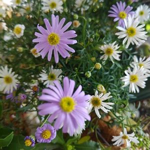上方 すぐ楽星空マム バニラ&ソーダ 下方 姫小菊 バイオレット&マゼンタピンク&サンドピンク 昨年11月頃お迎えしていた子達。あまり咲かぬまま冬へ突入してしまい どうかなー?と思っていましたが沢山咲き始めました🥰可愛いなあ💕
